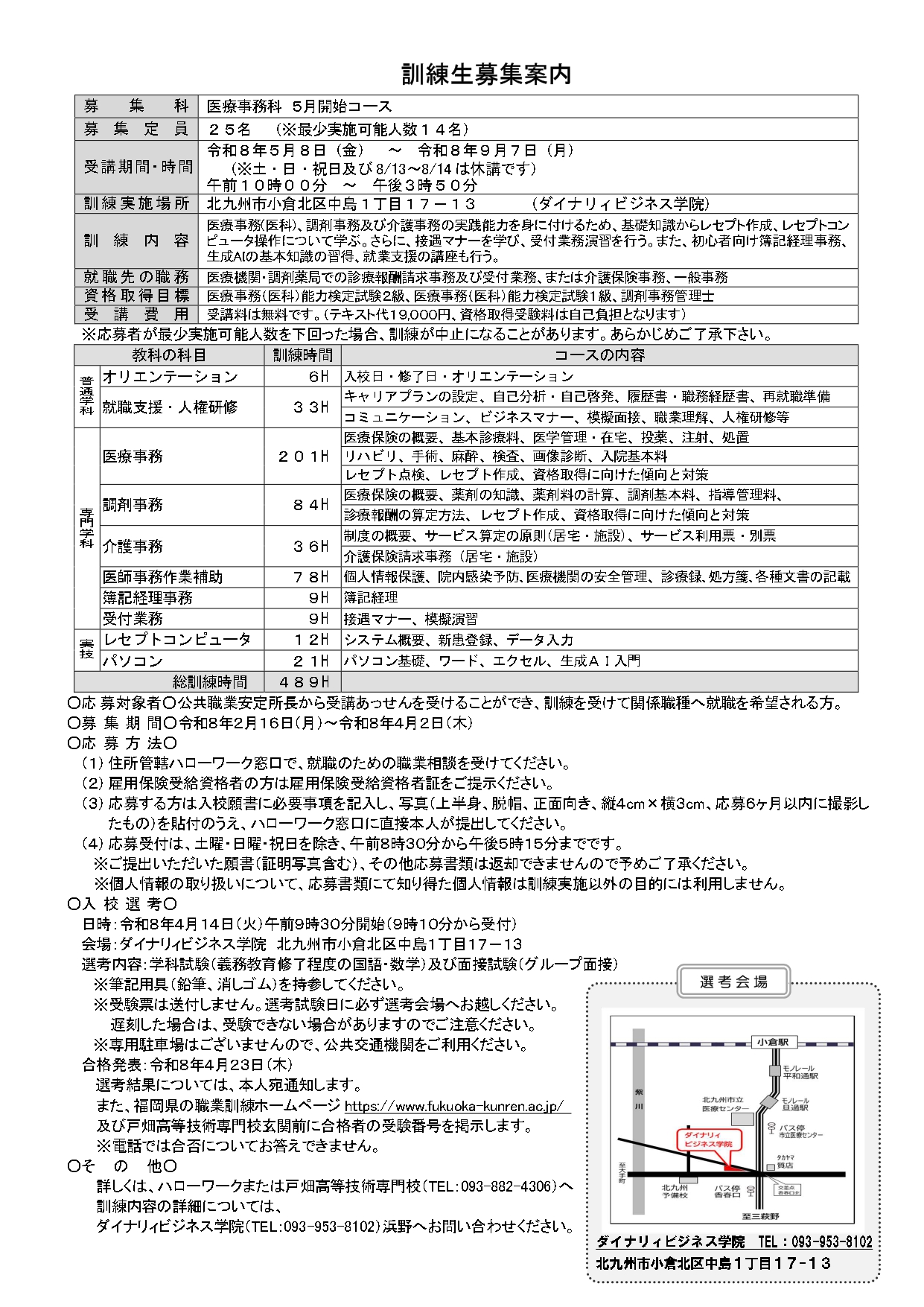 ダイナリィビジネス学院 093-953-8102